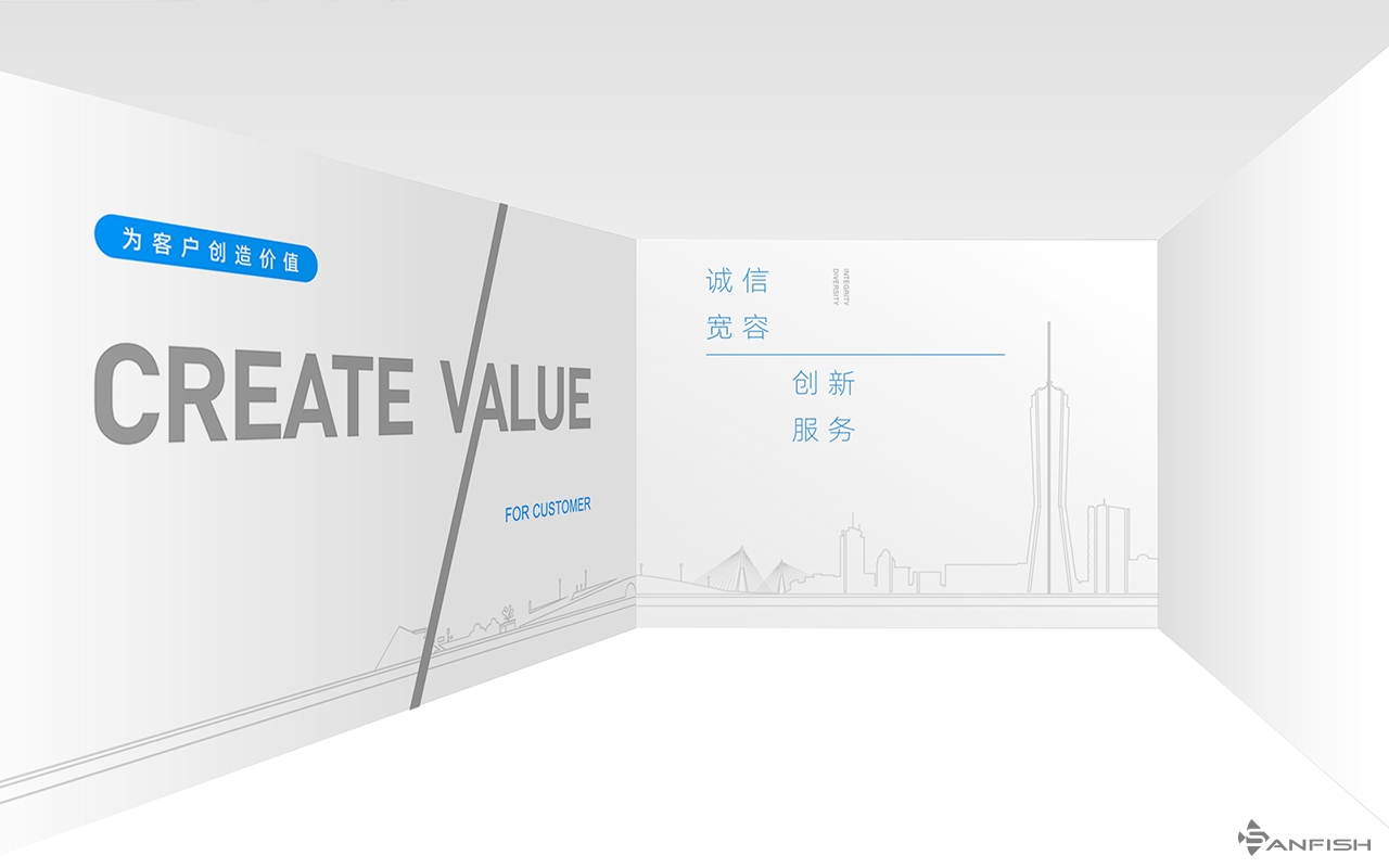 奇青智能辦公樓裝修后預留大面積白墻區域待規劃,客戶希望能結合行業特性,
